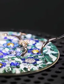 تُحيي تقنية الرسم المصغّر هذه الفراشات والزهور في ساعة لايدي آربلز أور فلورال بتباينات لونية نابضة بالحياة.