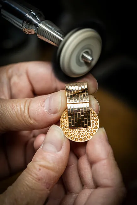 ذهب وردي عيار 18 قيراط، ماس، عرق لؤلؤ أبيض بنقش غيوشيه، حركة كوارتز سويسرية