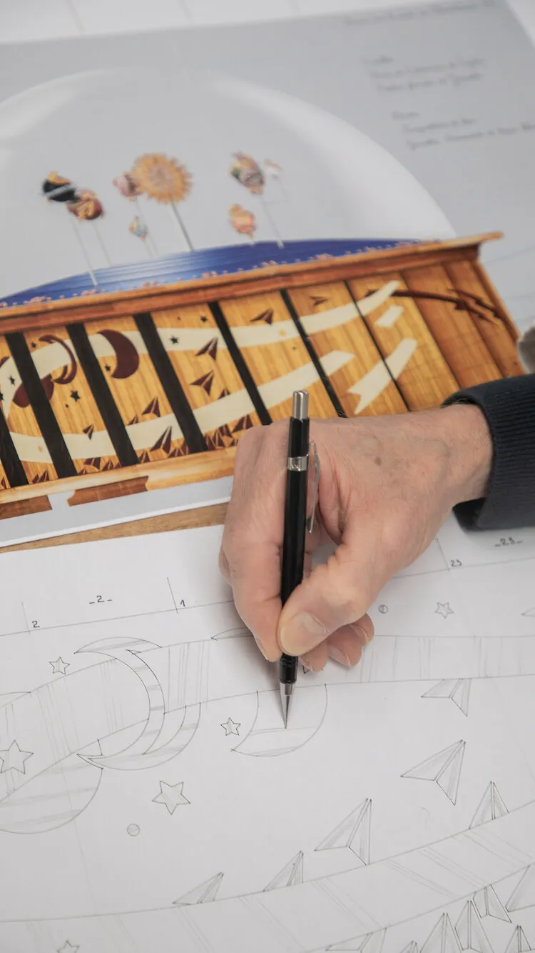 استلهمت حركة البلانيتاريوم الذاتيّة التشغيل من تقليد البلانيتاريوم العريق، وهي تعرض الشمس رفقة بعض كواكب المجموعة الشمسيّة الأخرى. يتحرّك كل كوكب سماوي وفق سرعة دورانه الحقيقيّة، بينما يدور القمر حول الأرض. عندما تبدأ الحركة، يقود شهاب ثمين الكواكب في رقصة سماوية تصاحبها نغمات بلورية، قبل أن يقوم ببيان الوقت.