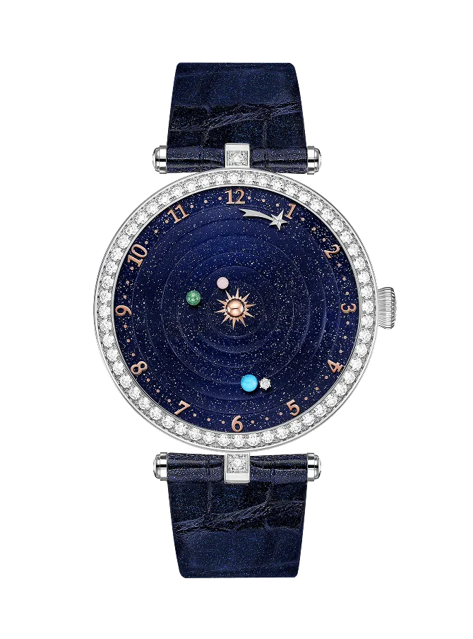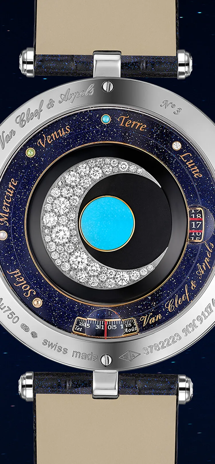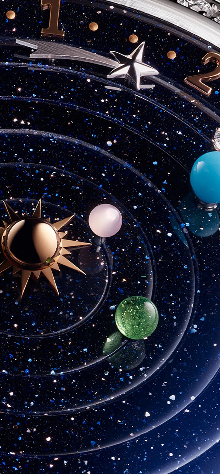 Van Cleef & Arpels 梵克雅寶特意推出 Poetic Astronomy® 詩意星象系列腕錶詮釋宇宙奇觀。這些作品描繪了璀璨星空、十二星座、日月運行的軌跡和星際芭蕾,將饒富詩意的繁星結合時間測量,為每分每秒注入獨特情感。
